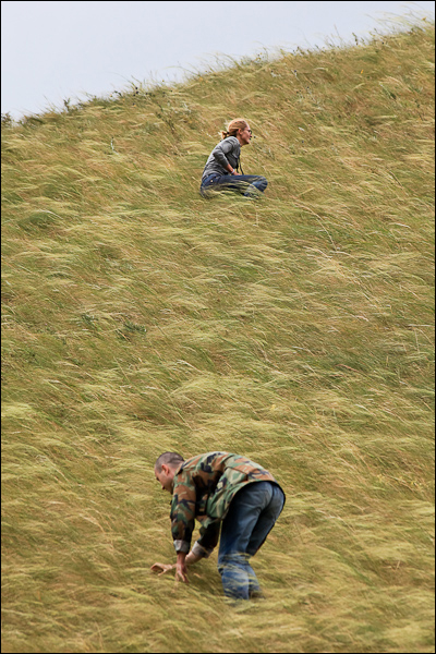 Спуск надо сказать далься гораздо проще - просто сели на 5ю точку и поехали. По сухой траве скользить одно удовольствие.