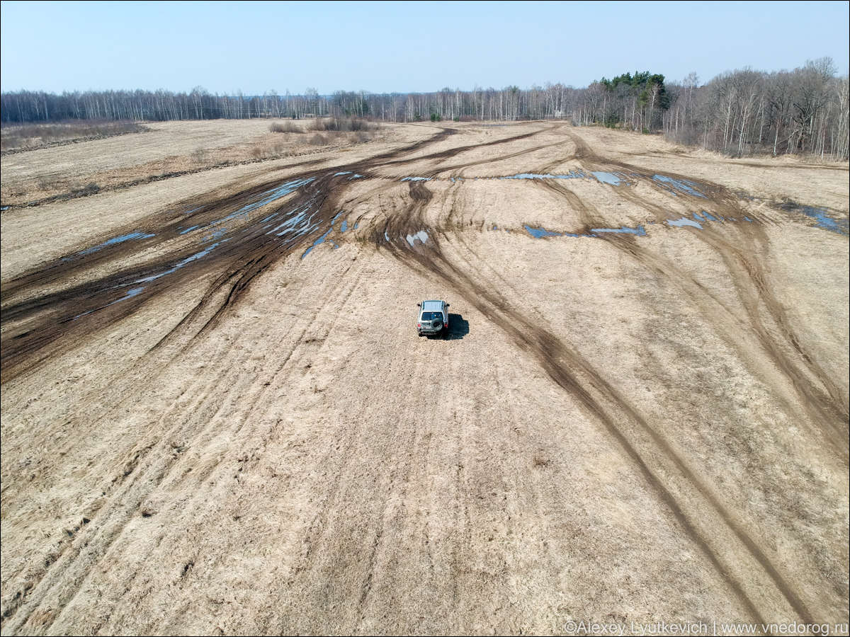 Решили проехать стандартной дорогой сквозь Мещеру и выйти в Мишеронский. По полю проехать не смогли - воды море. Пришлось по лесу в объезд. Но там снова вода..телепузики не брал