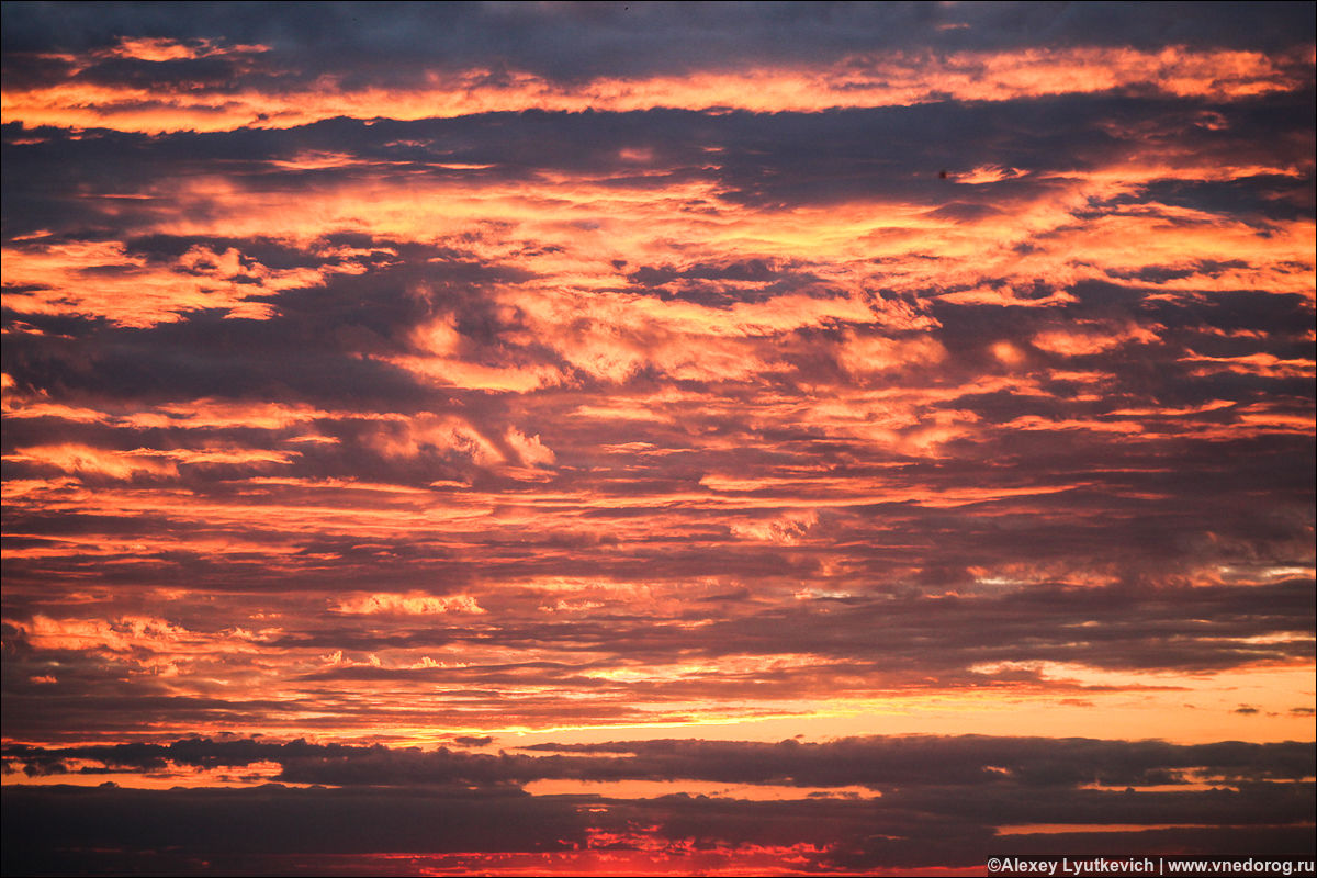 В течении часа небо попеременно меняло краски. Началось все с оранжево желтого.