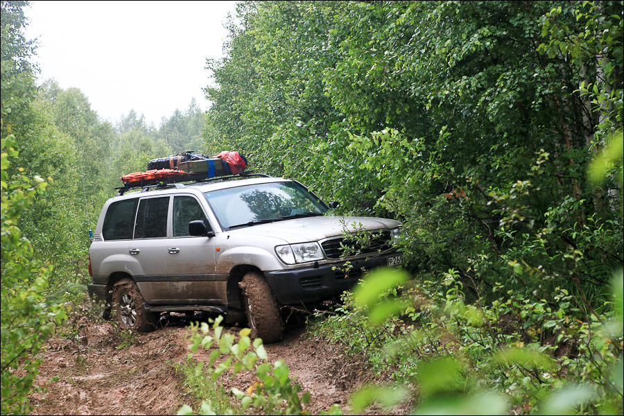 Вскоре дорога стала уходить от нужного направления сильно на северо-запад. Мы заметили небольшую отворотку по нашему маршруту – она была совеем заросшей, по ней никто давно не ездил. Решаем попробовать. Вначале дорога более менее приличная, но чем дальше тем деревьев вокруг становится больше и больше.