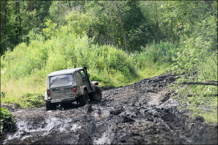 Боремся с бездорожьем. К этому времени я уже более менее привык к Тойоте и лебежения были сведены к минимому - предел проходимости машины мне стал известен, да и чаще стал идти ходом, а не внатяг.