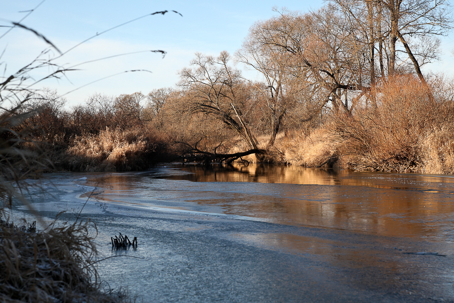 Угра чудо как красива - вода уже покрылась ледком по краям.