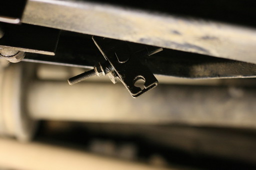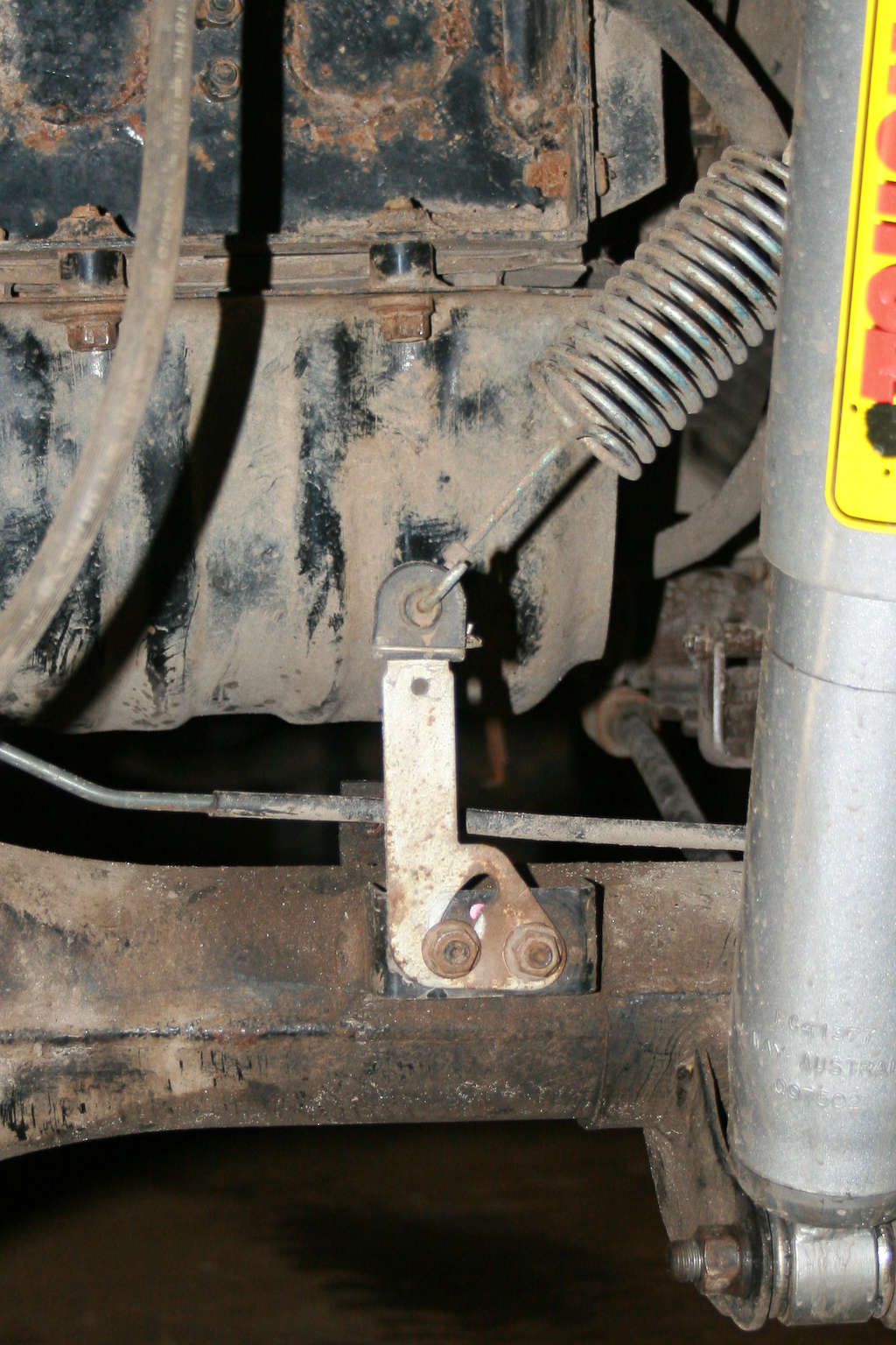 Если планируем выкатывать мост, то нужно открутить тросик ручника (для замены рессор не нужно). У меня резьба была подкисшая,  ушло довольно много времени. Ключом на 7  удерживаем четырехгнанный шток, ключем на 10 крутим гайку. Выкручиваем настолько, чтобы можно было провернуть бобышку на конце тросика и вытащить ее из кронштейна. Вытаскиеваем оба тросика , отверткой выдвигаем U образные фиксирующие скобы, вытаскиваем тросики из отверстия в раме. Откручиваем   болтики крепления тросиков к раме. Они  закисли, один сломался в процессе откручивания.