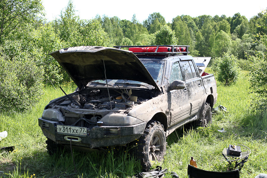 В итоге 2 авто на ходу, 2 еле едут.. Решили попробовать добраться на ночёвку к лесному озеру.