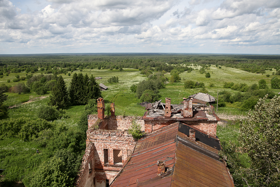 Сверху потрясающий вид. Вон там вдалеке находится огромное болото Соколье и река Соть.