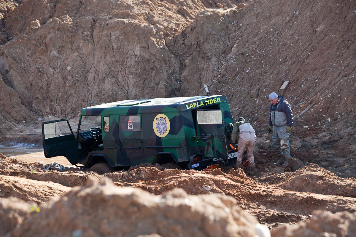 Догоняем экипаж Фонбета на 30 точке. Появилась надежда, вдруг еще сможем отыграть потерю. Лихо берем точку, пытаюсь выехать задом из лужи, чуть чуть не хватает. И так и сяк…никак.