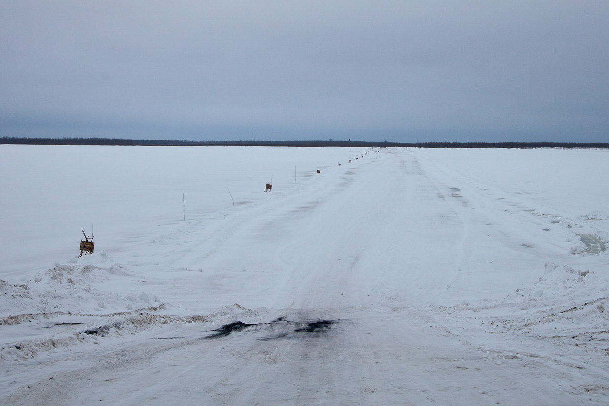 Дорога никак не изменилась после Усть-Цильмы - все те же бесконечные километры голого льда.
