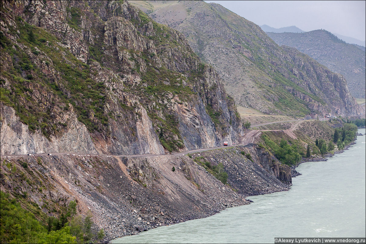 Дорога постоянно идет вверх. И надо бережно относится к технике и не насиловать ее. В паре мест видел такую картину.