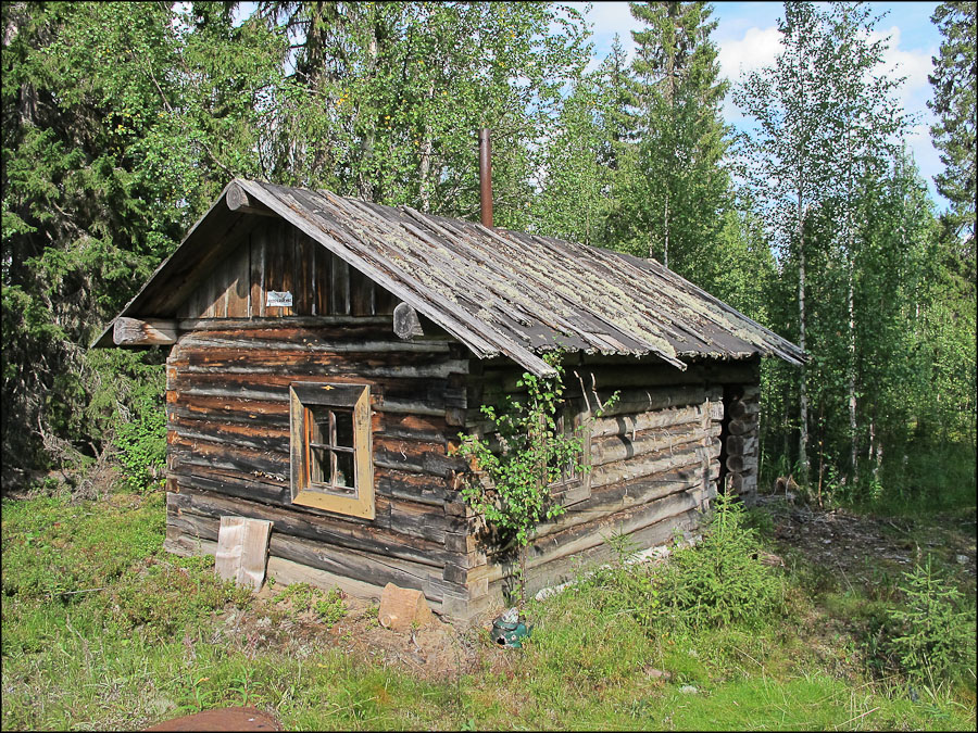 В 10.05 продолжили движение. В 12.00 прошли избу Ленькину, в 13.00 – Половина. У избы половина останавливаемся – время обеденное. Денек был очень погожий и теплый. Готовим обед на воздухе, на лавке перед избой. Заодно Андрей разделывает тетерева на вечер. Это желательно сделать днем, до постановки на ночлег, дабы не привлекать в лагерь запахом требухи медведя. Впрочем, следы жизнедеятельности медведей – помет и развороченные муравейники – попадались нам только в окрестностях Мылы. Дальше по Тракту их встречать не приходилось. Т.е. медведя здесь мало. Но осторожность не помешает.
