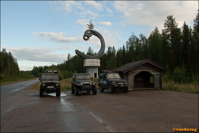 Проезжаем Ухту по объездной, с виду довольно новый город, движемся на Троицко-Печорск. Сразу за городом начинается грейдер. Но не чета тем, по которым мы ехали до этого. Сплошная каменная зубодробилка подвески. Ползем неспешно, дорога высасывает кучу сил. Вдоль дороги идет труба на подвесах. Сейчас точно не скажу, сколько длились эти мучения... 20-30 или более километров, но очень долго. Но потом вдруг ни с того ни с сего начался отличный гладкий асфальт. Странный парадокс дорогостроения. Уже к вечеру доехали до Троицко-Печорска. Вероятно, тут последняя заправка на нашем пути – заполняем все емкости топливом. И тут выясняется, что одна из канистр у Есаула треснула и течет по шву. Мечемся по городку в поисках канистры, с трудом нашли 10 литровку. В итоге перелили все топливо по бутылочкам, из которых и заправляли УАЗ.