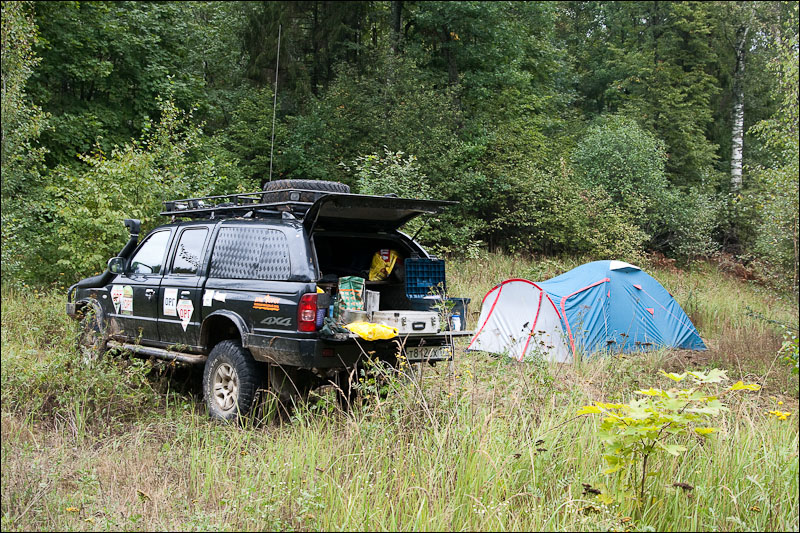 Почти час ночи...рубимся по какой то дороге, все размешено, глубокие колеи. Едем на грани засаживания. Но мест для стоянки нет - слева и спрва густой лес.