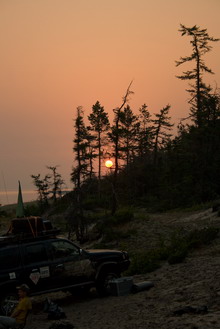 Полдня загорали и купались, затем рубились в дурачка в тени дерева. Андрюха привез два ящика прохладного пива , что в конец убило надежду выехать куда либо. К вечеру штурмана правда вновь ожили, но силы были уже подорваны. Я поначалу вклуючил Dire Straits и лег в палатку рядом с машиной, но после второго круга диска его вновь сменили на «Сектор Газа». Тут даже Димыч не выдержал, матюгнулся и выключил магнитолу. Говорят, к кому то в этот вечер приходил севереный олень и пел свою грусную северную песню. Или веселую...я не в курсе.