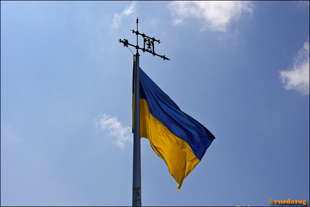 Жовто-блакитный флаг над Львовом.
