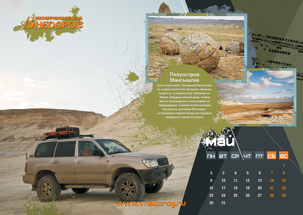 Календарь из 12 страниц формата А3 с обложкой содержит фотграфии с наиболее интересных мероприятий, произошедших в прошлом году. Казахстан, Кавказ, Рдейский монастырь, Гжатский тракт, мещерская магистраль и многое другое. Заказать календарь можно на форуме клубе.