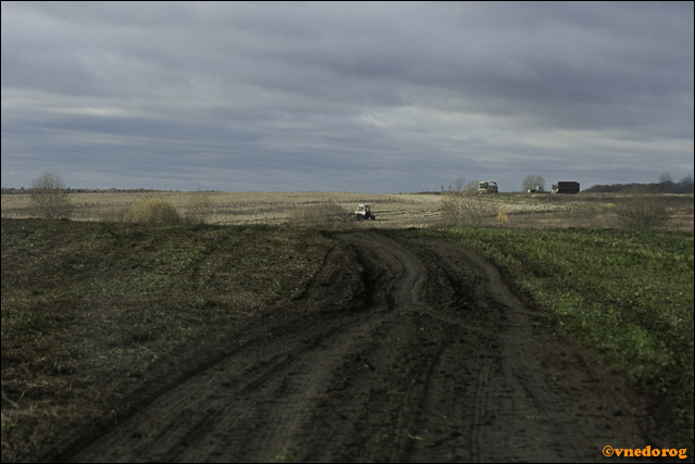 а вот и сами трактора, собирают остатки травы.Кстати коллеги - в полях лежат силосные кучи. Убедительная просьба не пробовать залезать на эти кучи. Они укрыты пленкой (хотя на первый взгляд это не видно).Перед селянами будет неудобно как то.