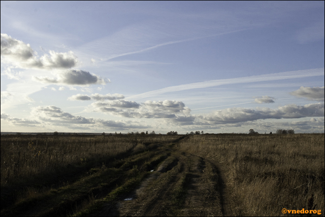 Коллеги! Хочу похвастаться - мне удалось спасти участников экспедиции от жесткого рубилова по этой бесперспективной ЛЭП. Саня всячески настаивал и упорно рубился вне всяких дорог по полю вдоль опор ЛЭП. Езда была жуткая, тряска, колдобины, еле еле ползли. Удалось уговорить его, что хоть мы и клуб "Внедорог", но ездить все таки лучше хоть по какому то подобию дороги.