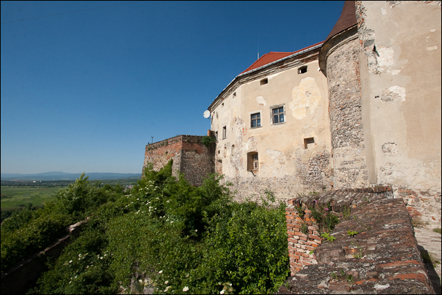 Держим путь дальше на Мукачево. Почти перед въездом в город сворачиваем налево в сторону замка Паланок. Он расположен на огромной горе-пупыре, которая возвышается посреди равнины – поразительно необычно. Паркуемся перед воротами и идем внутрь. Замок прекрасно отреставрирован и фантастически красив.