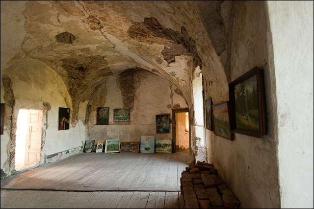 Нам повезло – практически одновременно с нами подъехал автобус с туристами и для нас провели экскурсию. Правда на украинском, временами было сложновато понимать. В настоящее время замок является музеем, но реставрационные работы проведены лишь внизу.