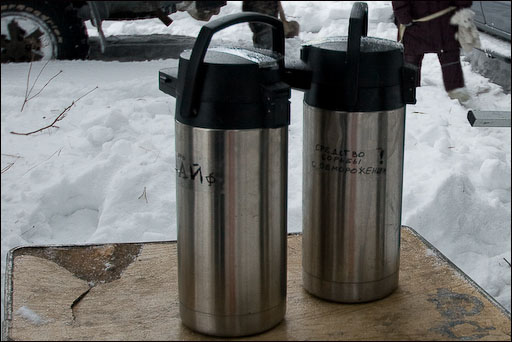 Чай и средство борьбы с обморожением. Несмотря на большое число непьющих водителей, остальной коллектив успешно боролся с обморожением.